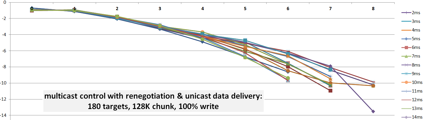 The setup in this case includes 180 targets running reservations-based storage protocol that I’d previously called “Choosy Initiator”.