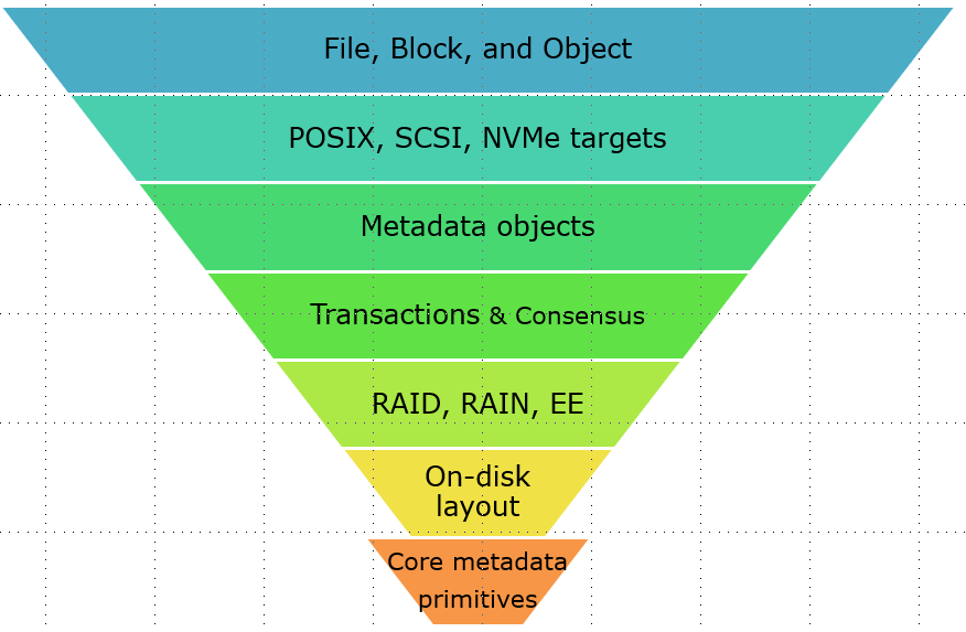 There’s also the crucial issue of controlling the complexity which tends to go through the roof in storage projects. Pick your own “inode” and build it up, one step at a time and block by perfect block? You decide.