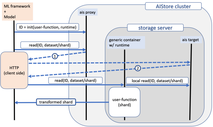 You can always start small. As long as there’s HTTP connectivity, AIS clusters can see and operate on each other’s datasets. One can, therefore, start with a single all-in-one container or a single (virtual) machine – one cluster, one deployment at a time. The resulting global namespace is easily extensible via Cloud buckets and other supported backends. Paraphrasing the epigraph, the true desire is to run on commodity Linux servers, perform close-to-data user-defined transforms, and, of course, radically simplify training models at any scale.
