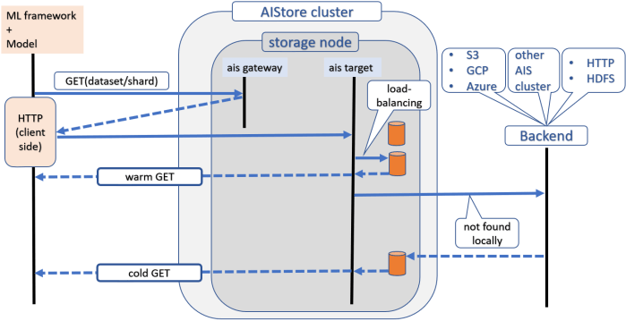 The focus on training apps and associated workloads results in a different set of optimization priorities and a different set of inevitable tradeoffs. Unlike most distributed storage systems, AIS does not break objects into uniform pieces – blocks, chunks, or fragments – with the corresponding metadata manifests stored separately (and with an elaborate datapath to manage all of the above and reassemble distributed pieces within each read request, which is also why the resulting latency is usually bounded by the slowest link in the corresponding flow chart).